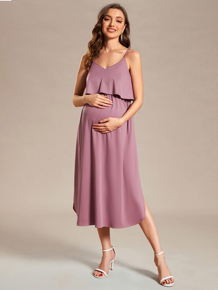Stay comfortable and stylish during your pregnancy with our Airy A-Line Maternity Dress. Featuring adjustable spaghetti straps, this knee-length dress is designed for both comfort and fashion. The A-line silhouette allows for plenty of movement, while the lightweight and breathable fabric keeps you cool. Perfect for both casual and semi-formal occasions, this maternity dress will become a staple in your wardrobe. Get yours today and enjoy the perfect combination of style and comfort.